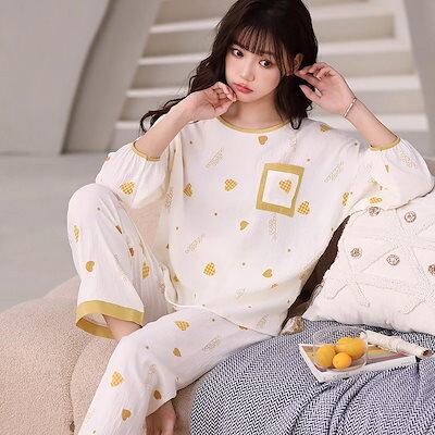 2025 春 夏 パジャマ ルームウェア セットアップ 七分袖 ズボン ポケット 部屋着 レディースファッション