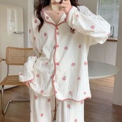 2025 春 夏 パジャマ ルームウェア セットアップ かわいい 長袖 ズボン 部屋着 レディースファッション