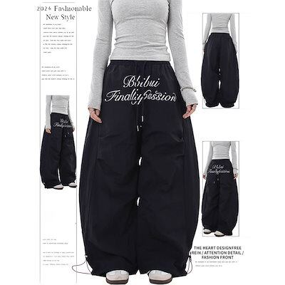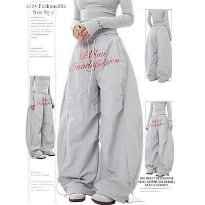 2025春夏 ウエストゴム ハイウエストカーゴパンツ ボトムスK-POP 衣装 パンツベイカーパンツストレートゆったりルーズ 韓国カジュアルスポーティーメンズライクレディースファッション