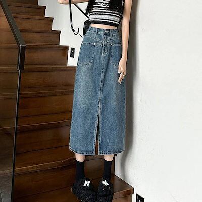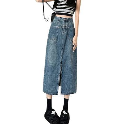 ロングスカート レディース 韓国ファッション かわいいゆったりデニムスカート