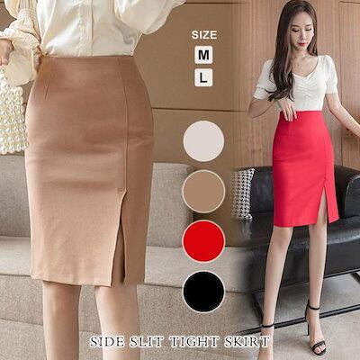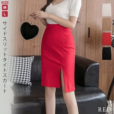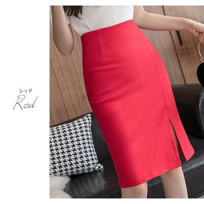 タイトスカート ひざ丈 レディースロング 春夏 黒 赤 スカート ペンシルスカート ひざ上 ミモレ アイボリー ベージュ レッド ブラック 20代 30代