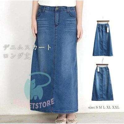 ヴィンテージ加工 デニムスカート フレアスカート Aラインスカート デニム スカート マキシ丈 ロング ロングスカート