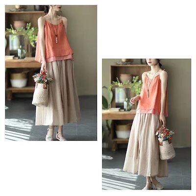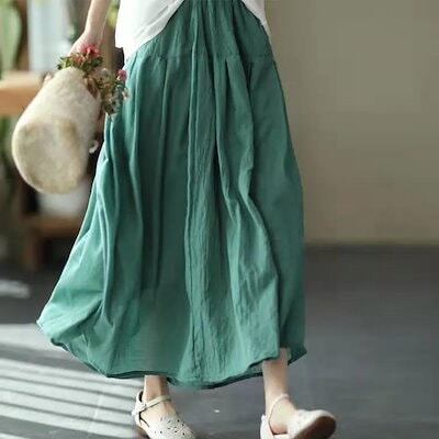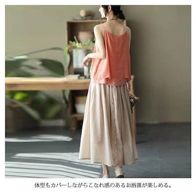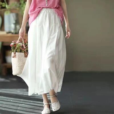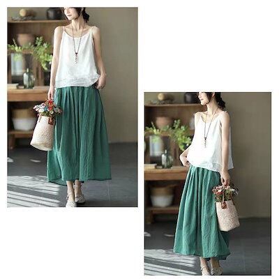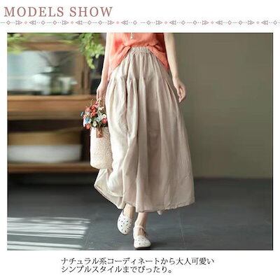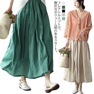 スカート リネン混 レディース 春夏 フレアスカート ロングスカート 綿混 麻混 ウエストゴム ボトムス マキシ丈 ミモレ丈 楽ちん おしゃれ リラッ