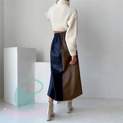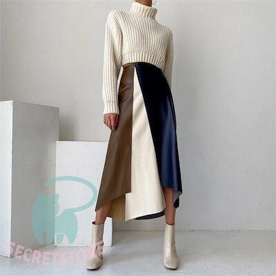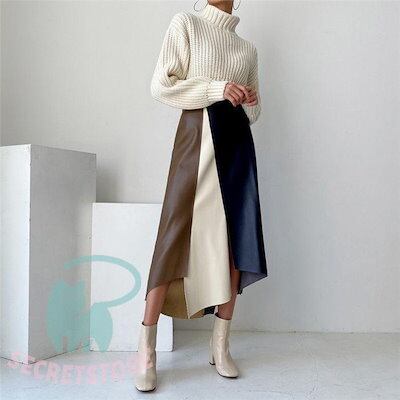 スカート レディース フレアスカート 膝下 ロングスカート 春 秋 冬 ロングスカート ミモレ丈 ボトムス ハイウェスト 大人 きれいめ 配色 不規則 韓国風 通勤