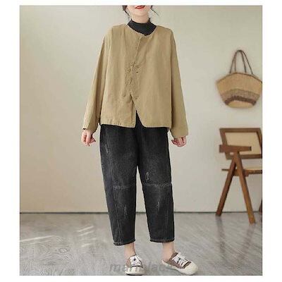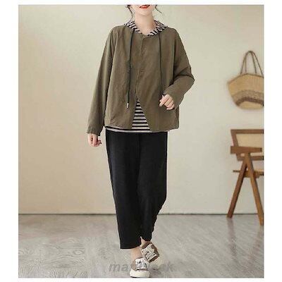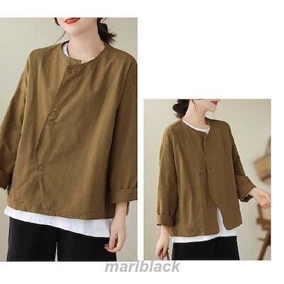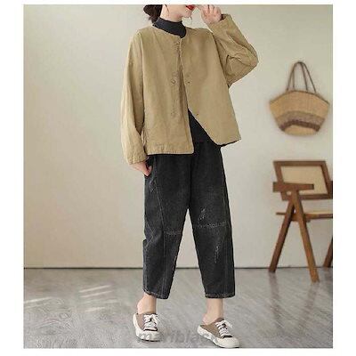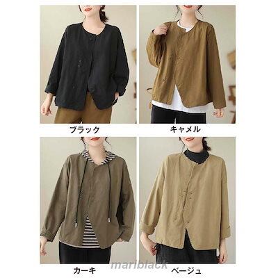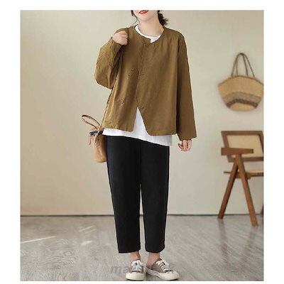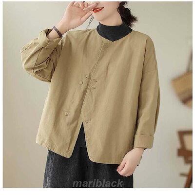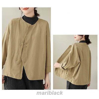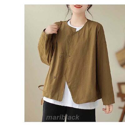 テーラードジャケット ノーカラー ジャケット レディース 春 秋 ショート丈 長袖 コート ノーカラー アウター 羽織り トップス ノーカラー カーディガン とろみ コート コットン 着回