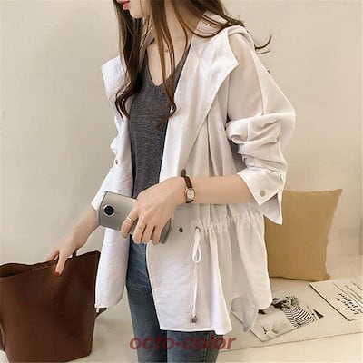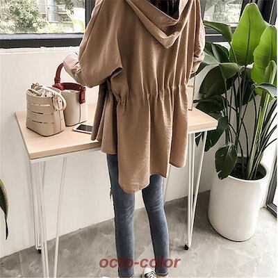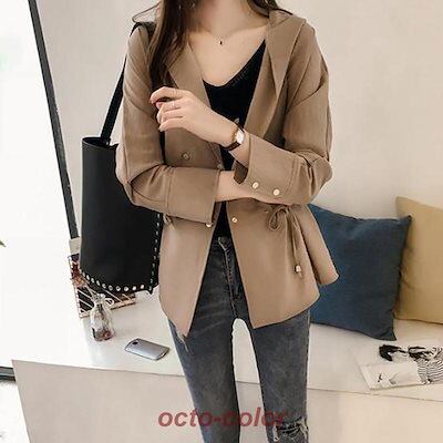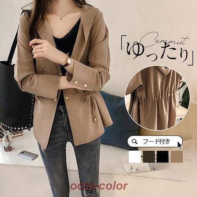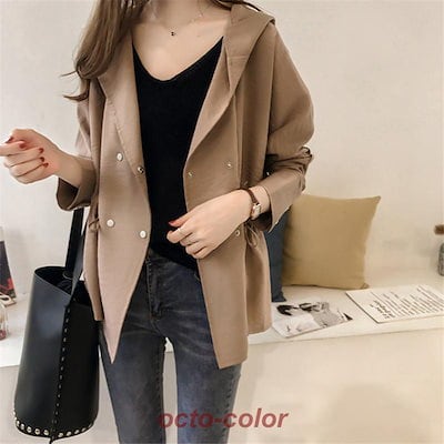 テーラードジャケット トレンチコート レディース スプリングコート 春コート ゆったり アウター 薄手 ミドル丈 フード付き カジュアル 春コーデ 春秋 ボタンダウン アウター 韓国ファッション