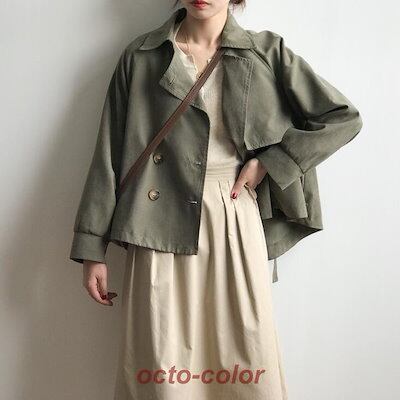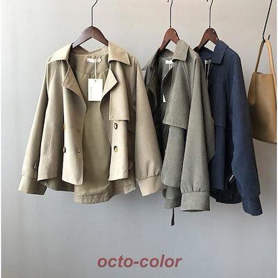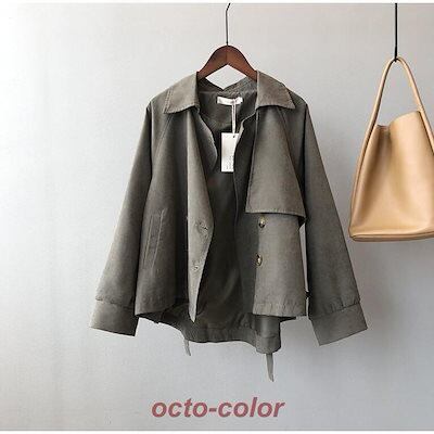 テーラードジャケット スプリングコート トレンチコート レディース 春 秋 ライトアウター 長袖 ショートコート きれいめ 体型カバー 30代 40代 50代 ドロップショルダー アウター 韓国ファッ
