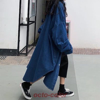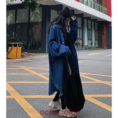 テーラードジャケット 個性的 トップス アウター ジャケット Gジャン デニムワンピース 膝下 ロング丈 袖あり 長袖 襟付き 前開き デニム ブルーデニム シンプル カジュアル おしゃれ アウター
