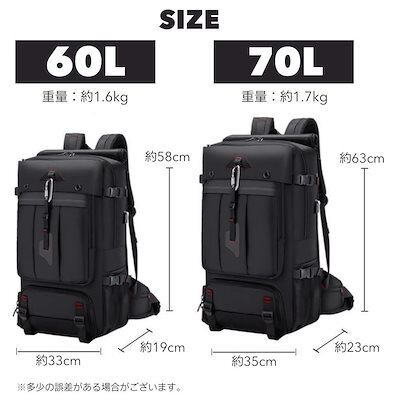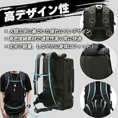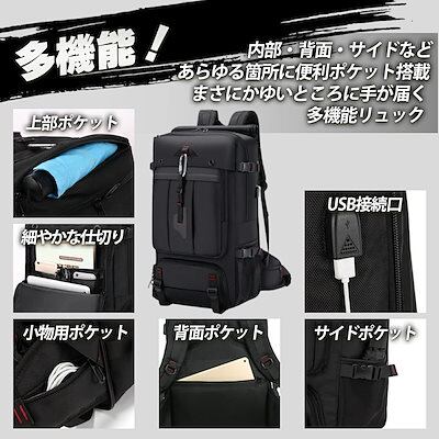 大容量 バックパック ビジネスリュック スクエア型 多機能 60L-70L 大きい リュックサック 登山 旅行 キャンプ アウトドア ハイキング 防災 防水 黒 ブラック 無地 メンズ レディース 四
