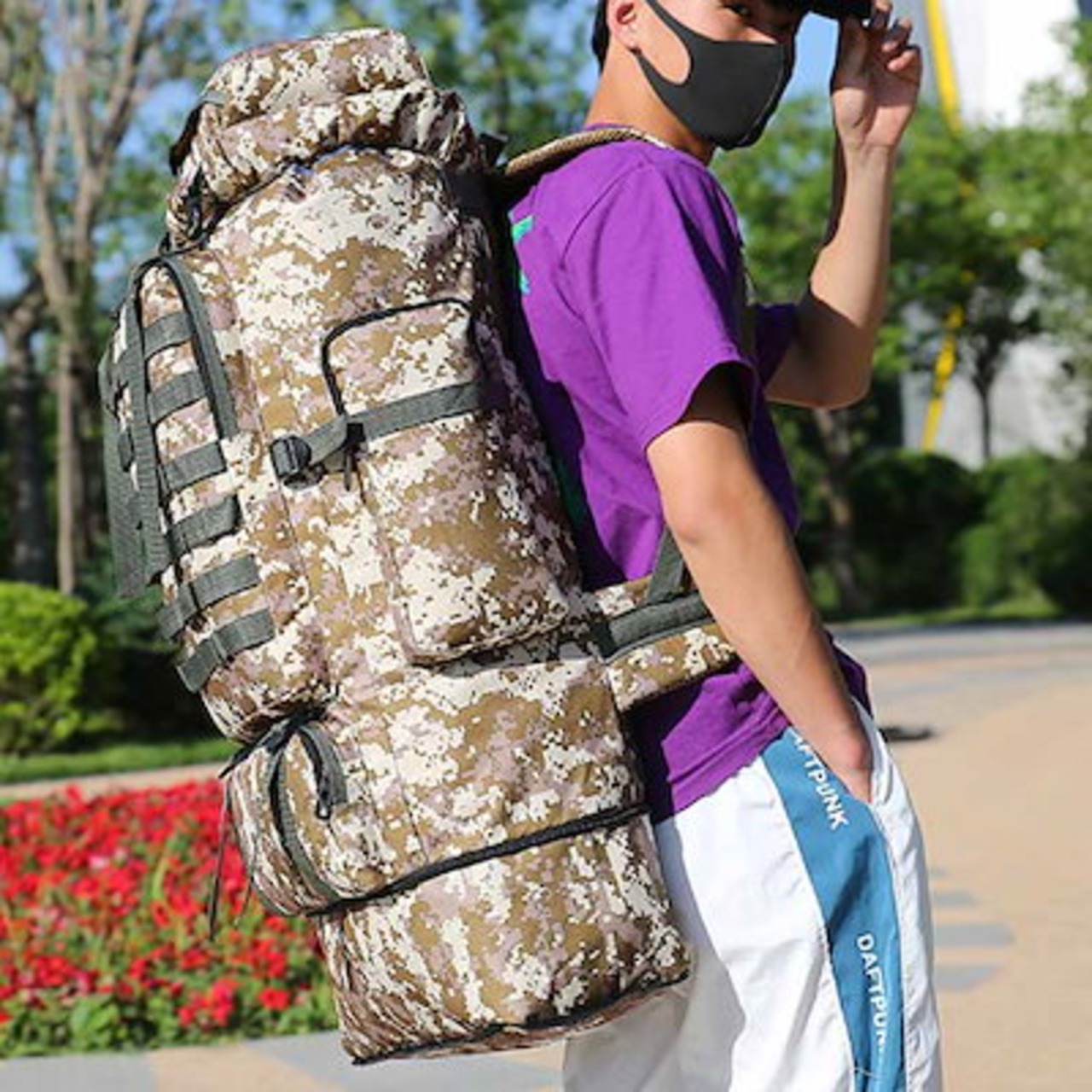 大容量 アウトドア キャンプ 100L 大型 登山リュック バックパック リュックサック 登山 旅行 レディース 登山リュック リュック 拡張 防災リュック ウエストベルト 無地 迷彩 ミリタリー 特