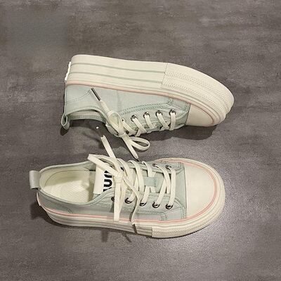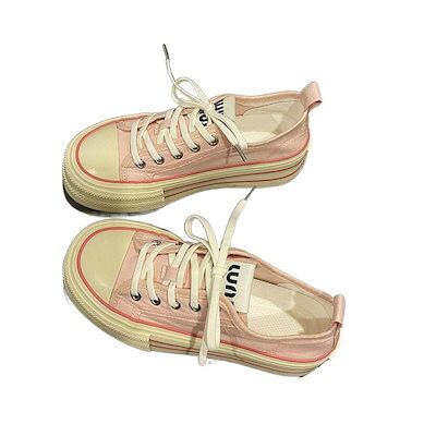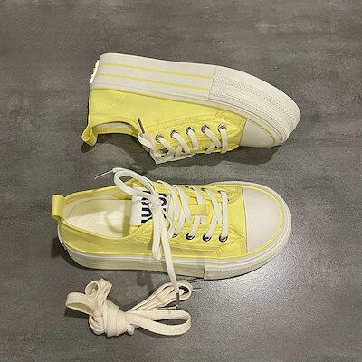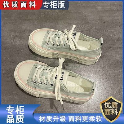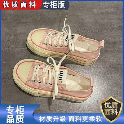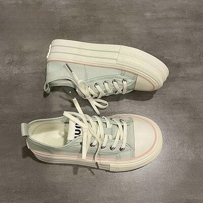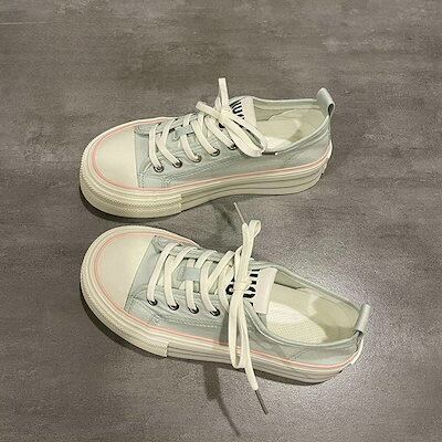 2025年春秋の新作通気性のある厚底キャンバスシューズレディース韓国風ファッショントレンドオールマッチのホワイトシューズニッチスニーカー