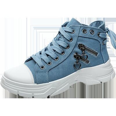 デニムハイカットキャンバスシューズレディース韓国カジュアルシューズ2025春秋新作レトロ大きいサイズスニーカージッパー