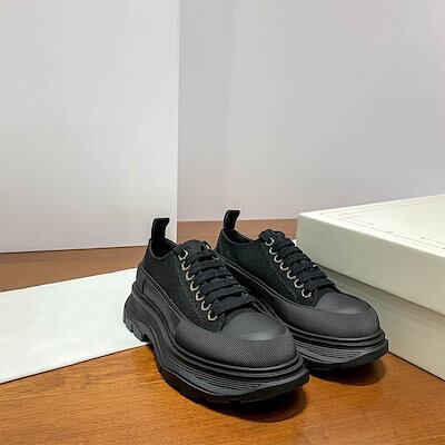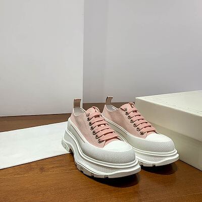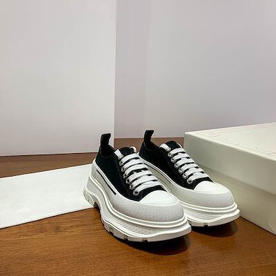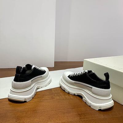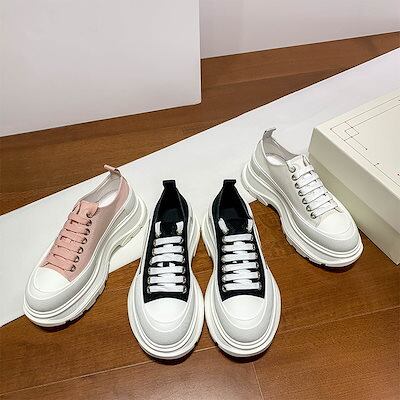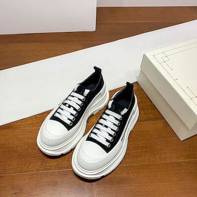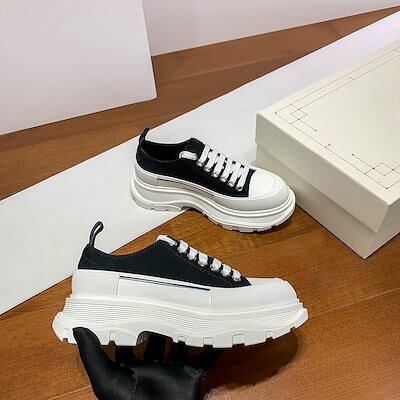 マックイーンの白い靴女性用のカラーマッチング厚底キャンバスシューズ高さを強調するレースアップの新しいプラットフォームシューズ男性用の韓国版スニーカー