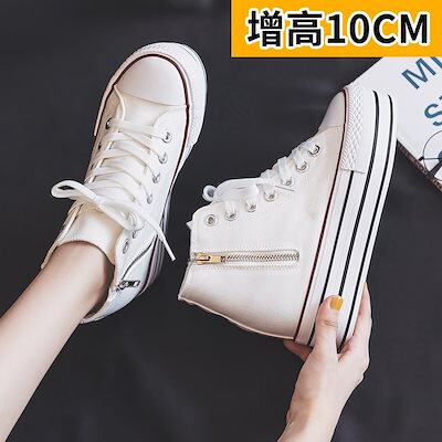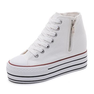 女性用身長アップキャンバスシューズ2025春秋新作両面ジッパーシューズ韓国版オールマッチ厚底プラットフォームシューズ