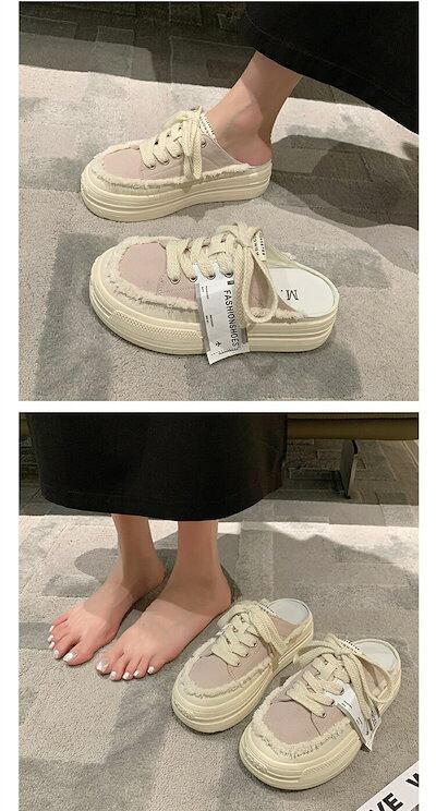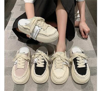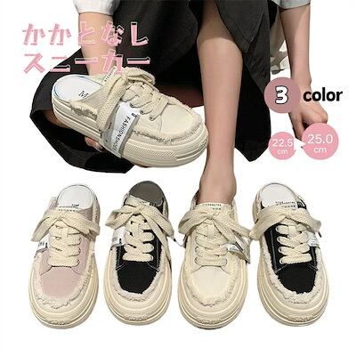 レディース かかとなし スニーカー 黒 ピンク ベージュ サンダル スリッポン シューズ 靴 スリッパ キャンバス 婦人靴 レースアップ シンプル カジュアル スニーカー ベランダ キャンバスシューズ