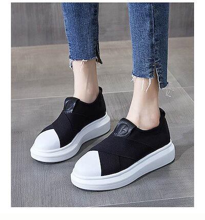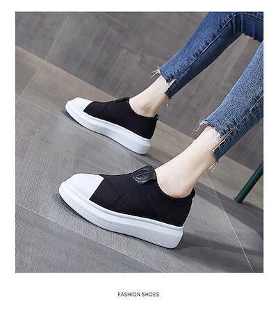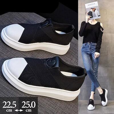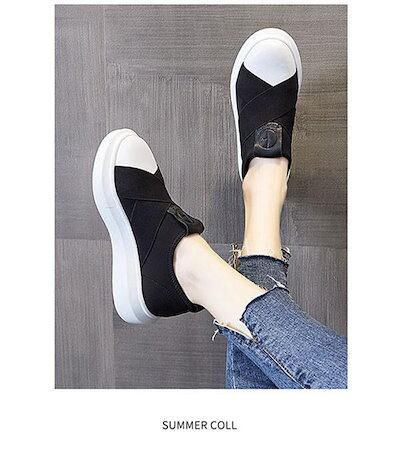スリッポン 厚底 夏 かかとあり スニーカー レディース つっかけ キャンバスシューズ ヒール5センチ 大きいサイズ サマー カジュアル おしゃれ お出掛け コンフォート シューズ 美脚 22.5/2