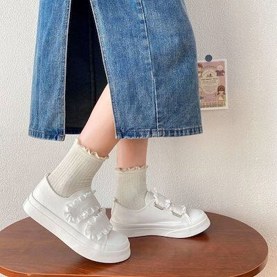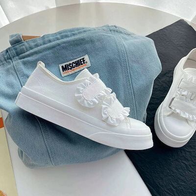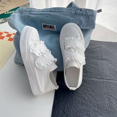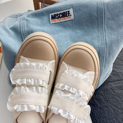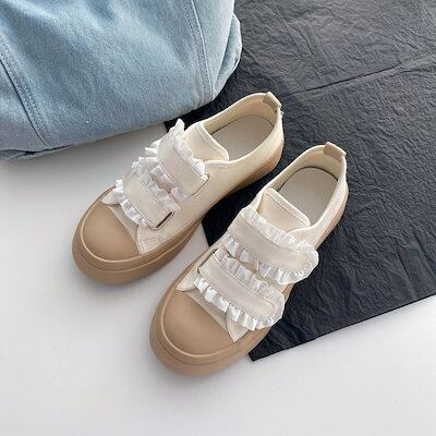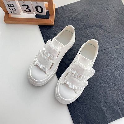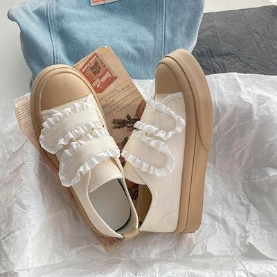スニーカー 厚底スニーカー ダッドスニーカー フラットシューズレースベルクロ学生かわいいキャンバスシューズローファーボードシューズローファー フラットパンプス スタイルアップヒールパンプス