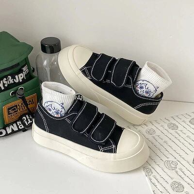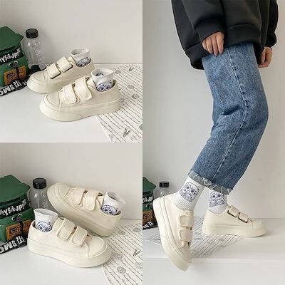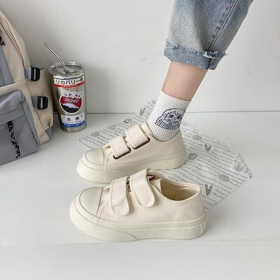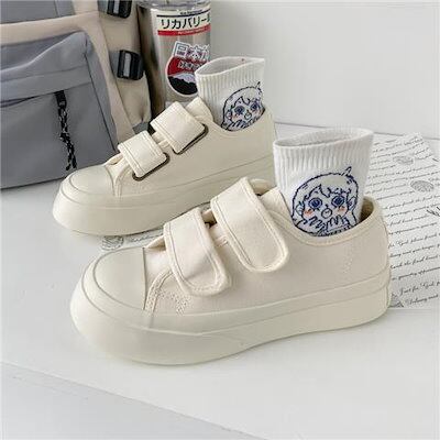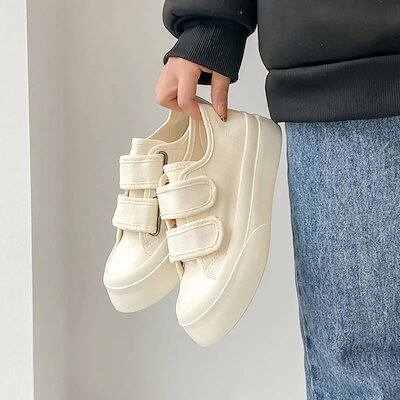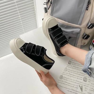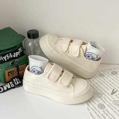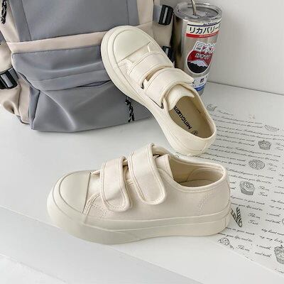 スニーカー 厚底スニーカー ダッドスニーカー フラットシューズ厚底キャンバスシューズかわいいベルクロ大きな頭の靴の学生百小さな白い靴とローファー フラットパンプス スタイルアップヒールパンプス