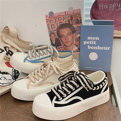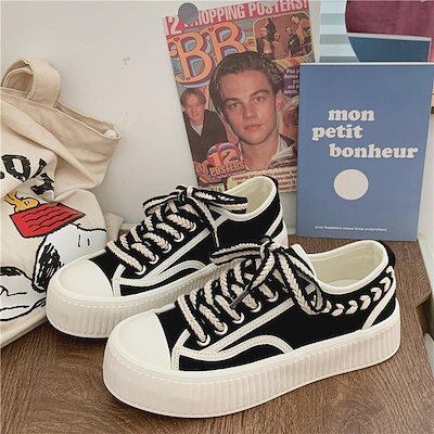 スニーカー 厚底スニーカー ダッドスニーカー フラットシューズ平底のボードシューズ 厚底のキャンバスシューズ カジュアルな学生靴ローファー フラットパンプス スタイルアップヒールパンプス