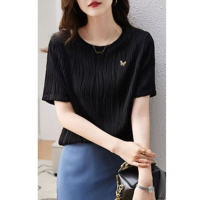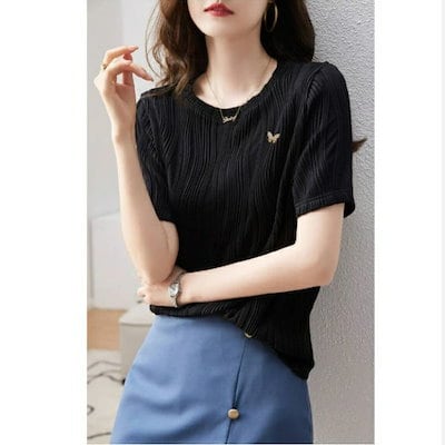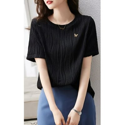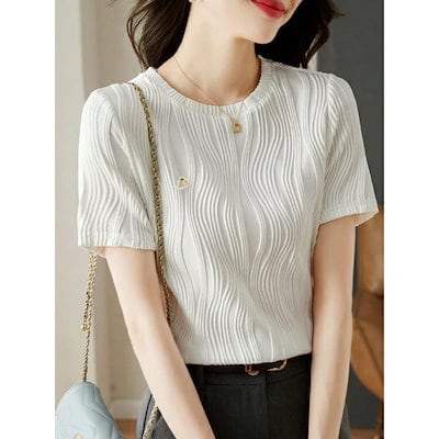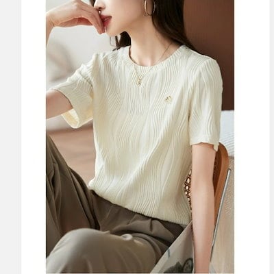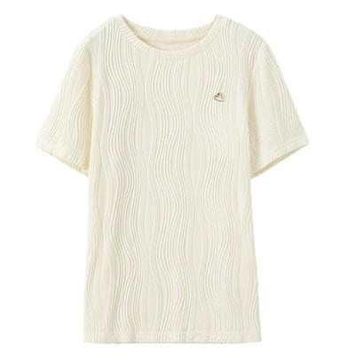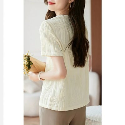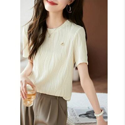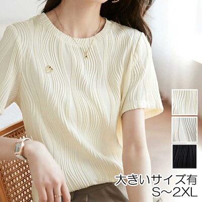 トップス カットソー インナー Tシャツ クルーネック リブ エレガント レディース 大人 可愛い きれいめ カジュアル フェミニン 半袖 シンプル ベーシック 体型カバー ベージュ ホワイト 白 ブ