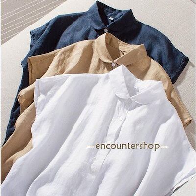 リネンシャツ 半袖 レディース 麻100 リネン100% ブラウス フレンチリネン 透け感 無地 シンプル 春夏 春 夏 通勤 在宅 ベーシック 20代 30代 40代 50代