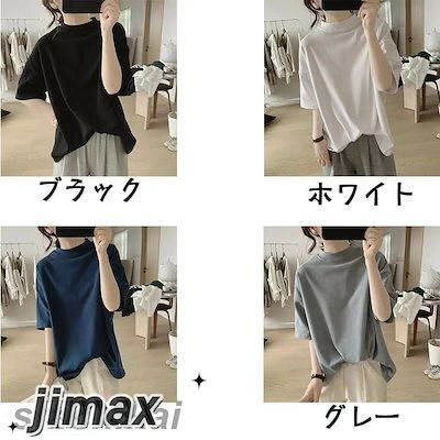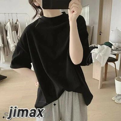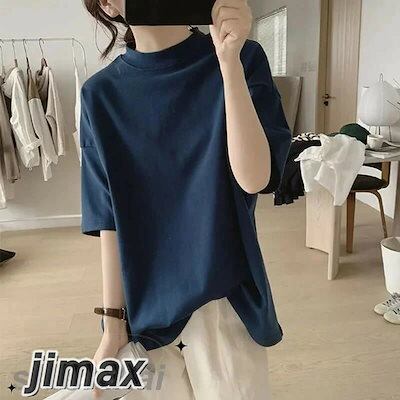 接触冷感 涼しいコットン tシャツ レディース 春 夏 半袖 ドロップショルダー ボトルネック ハイネック ラグラン ヘビーウェイト さらさら ゆったり 無地 カットソー トップス UV対策 uvカッ