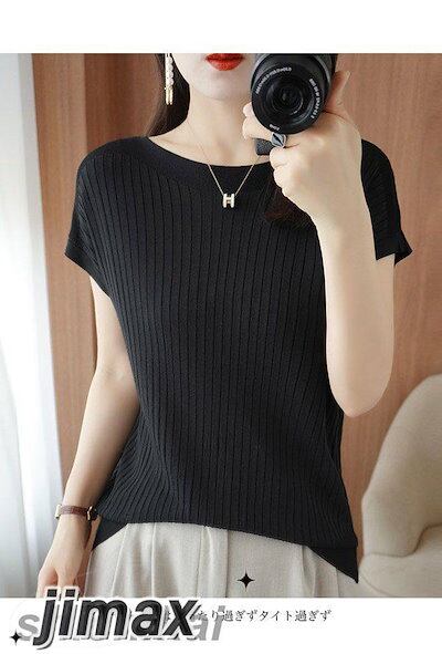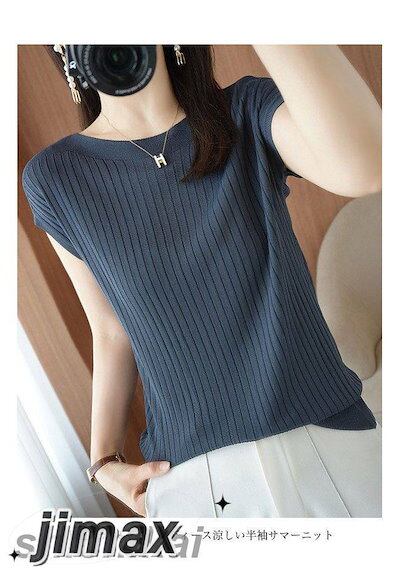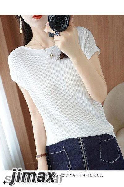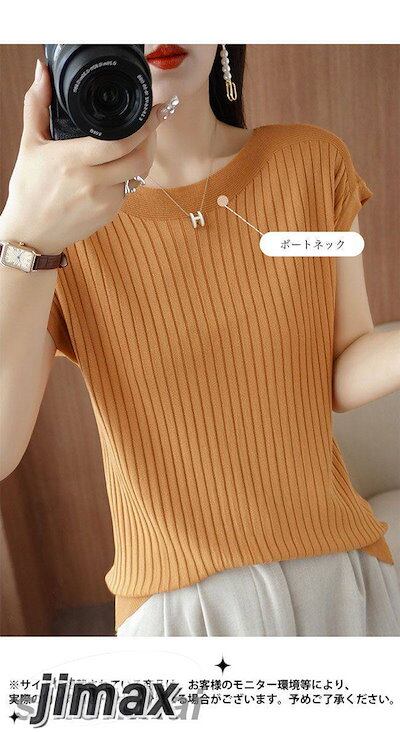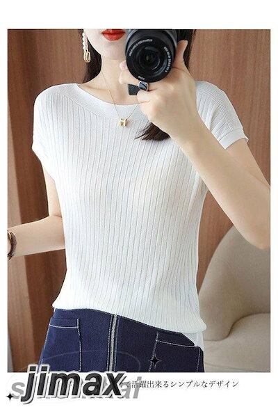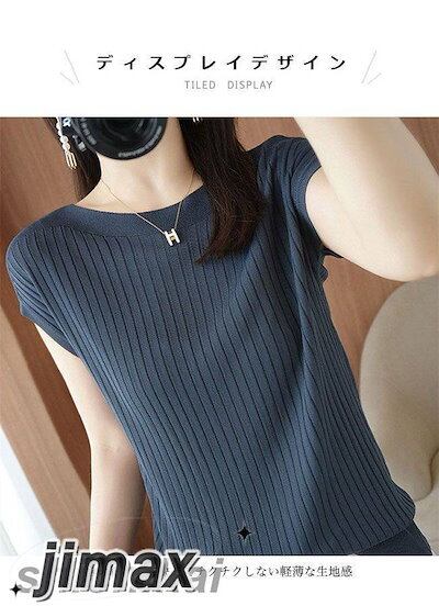 Tシャツ 夏 半袖 薄手ニット レディース サマーニット ボートネック 接触冷感 半袖Tシャツ ゆったり オフィス エレガント ニットTシャツ ソフト 軽薄 涼しい 素肌 夏Tシャツ サマーTシャツ