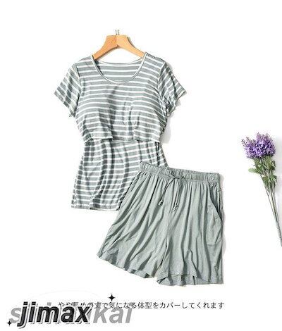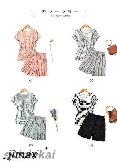 セットアップ Tシャツ ショートパンツ レディース カップ付き 下着 肌着 パッド付き ボーダー ゆったり シンプル 半袖 インナー トップス 2点セット