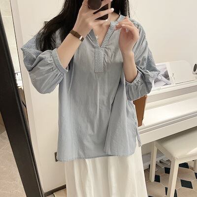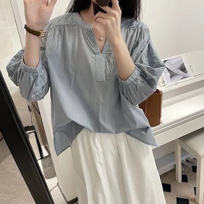 ゆるっとカジュアル クルーネック ビッグシャツ トップス クルーネックトップスシャツ 半袖 ブラウス トップス レディース
