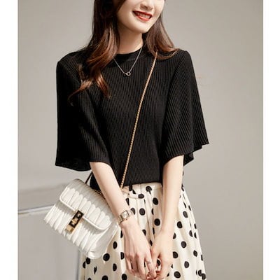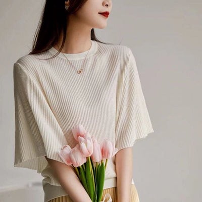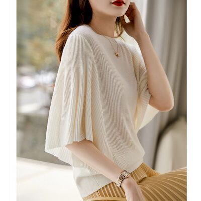 【1つ買うと1つ無料】スウェット 大人お洒落 トップス ラッフル袖 気質 百掛け tシャツ 半袖 レディース 快適 柔らかい ニット 五分袖 Tシャツ サマーニット ブラウス ゆったり 大きいサイズ