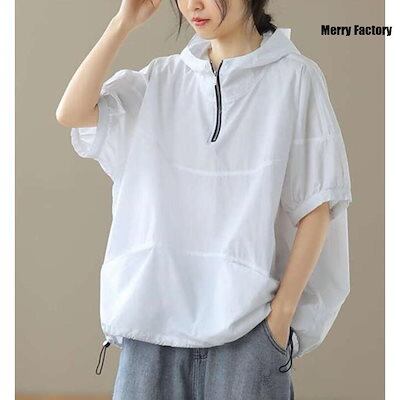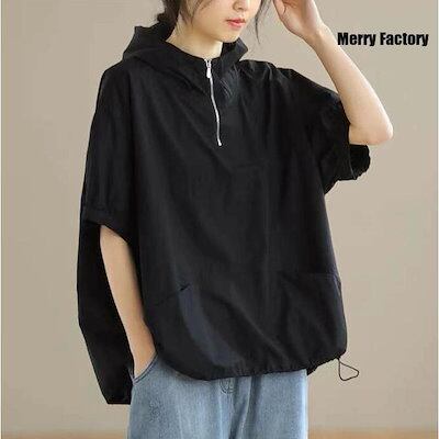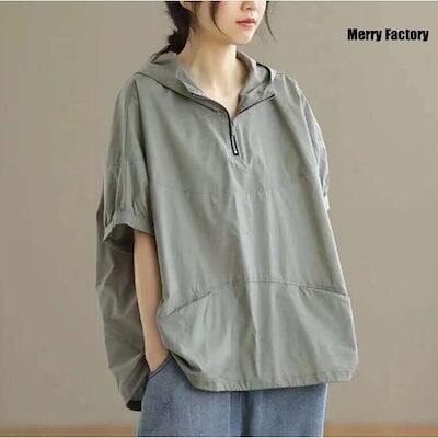 新しいデザイン UVカットパーカー レディース 半袖 Tシャツ 夏 ゆったり ビッグシルエット トレーナー おしゃれ フード付き プルオーバー 大きいサイズ 体型カバー