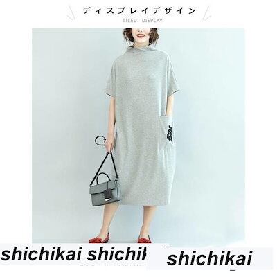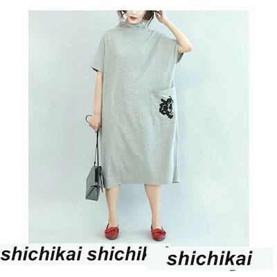 新生活 刺繍 レディース Tシャツワンピース カットソーワンピース 半袖 ミディアムワンピース ミモレワンピース ゆったり ドルマン 春夏秋 冬新作 秋 春 冬 秋ファッション 冬物 春物 秋物 プレ