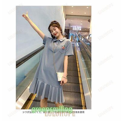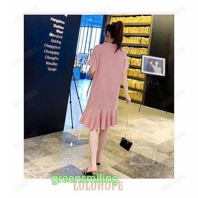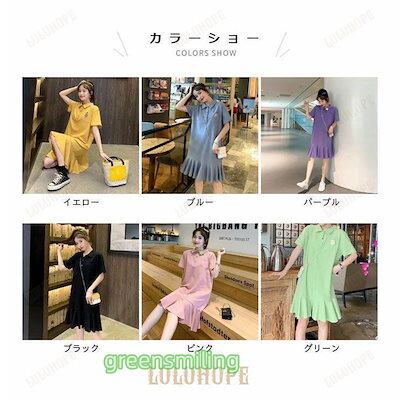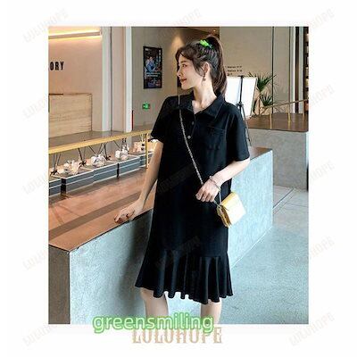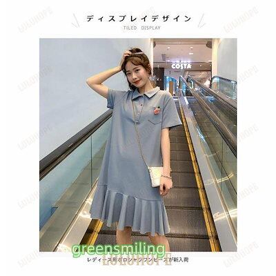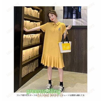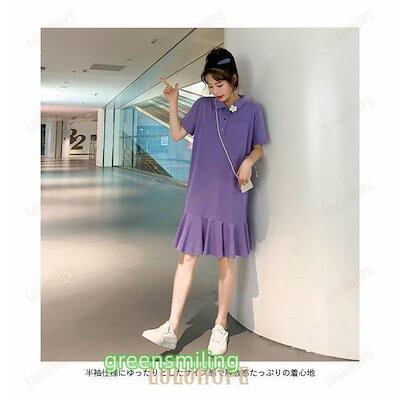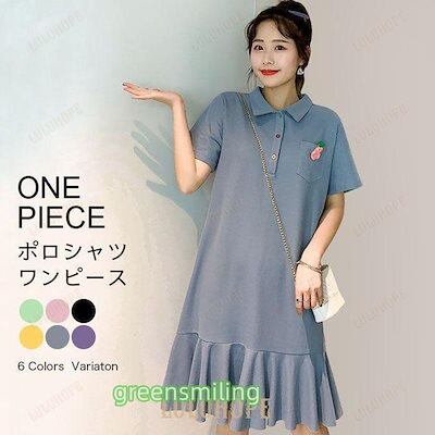 Tシャツ ワンピース 半袖 レディース ポロシャツワンピース ゆったり Tシャツ ワンピ ミディアム丈 夏 半袖ワンピース ポロシャツワンピ 可愛い フレア裾 ひざ