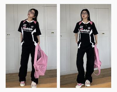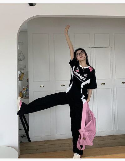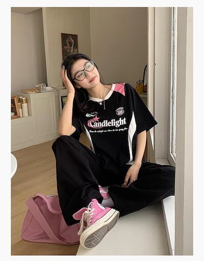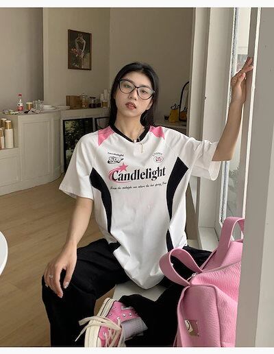 2025夏 韓国可愛い風トップス Tシャツ ファッション 半袖 スリムフィット サイド ペイントシルエット ゆったり丈 休日レディースサイズ韓国Vネック おしゃれ カジュアル メンズライク T