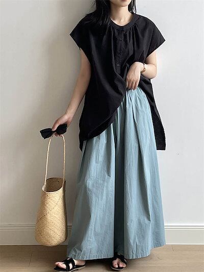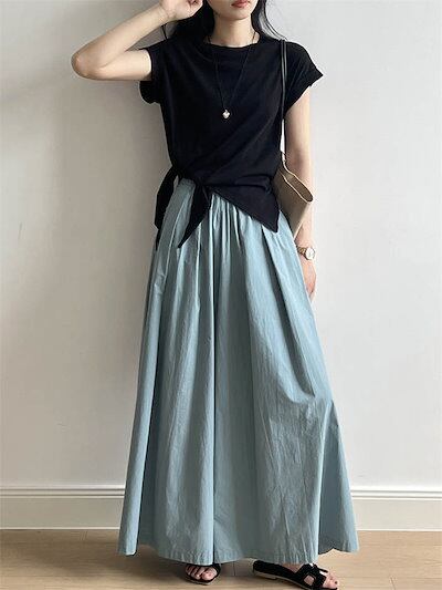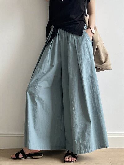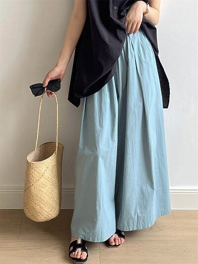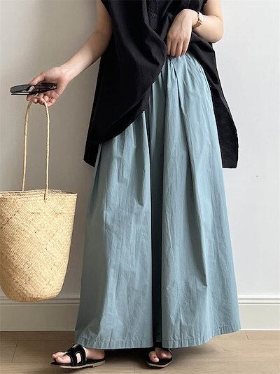 ワイドパンツ ロング丈 レディース パンツ ワイド ボトムス フレアパンツ スカーチョ スカンツ ウエストゴム きれいめ リラックスパンツ イージーパンツ ロングパンツ 長ズボン 揺れる ゆっ