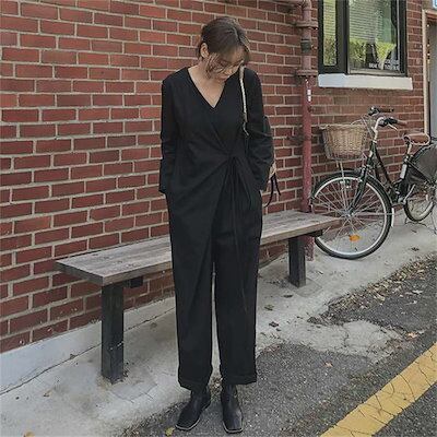 オールインワン レディース 長袖 サロペット パンツ ゆったり ロング 春 夏 秋 つなぎ オーバーオール パンツスーツ パンツドレス ワイドパンツ ワイド ジャンプスーツ 長ズボン 無地 コットン
