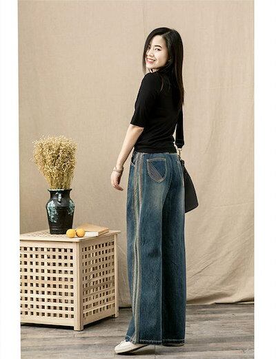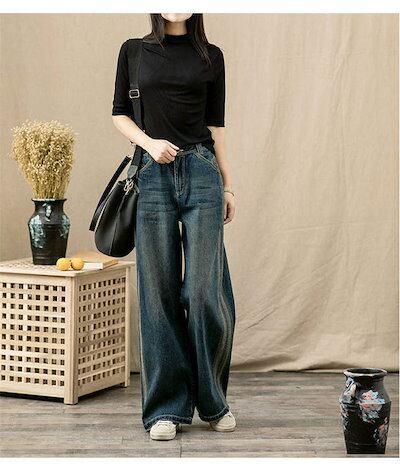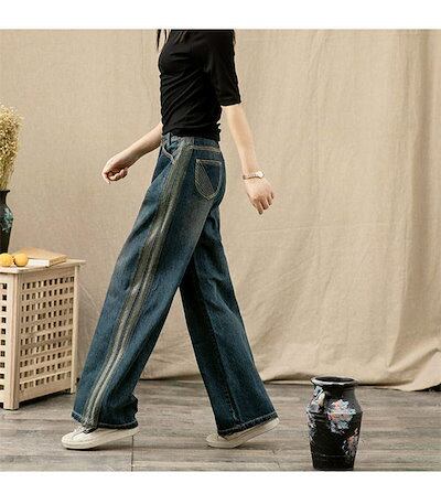デニム パンツ レディース ワイドパンツ 夏 秋 ボトムス ズボン ジーンズ 柔らか ストレートパンツ 大人 ゆったり ワイド 楽ちん リラックス シンプル きれいめ お洒落 体型カバー カジュアル