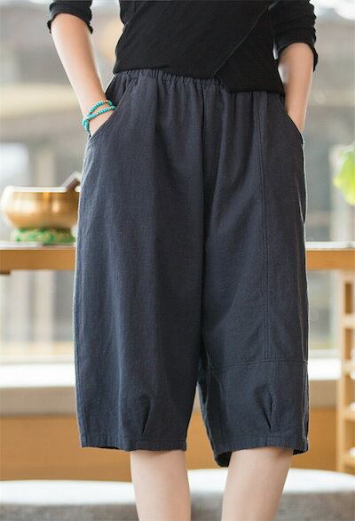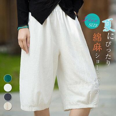 ハーフパンツ レディース 綿麻 ショートパンツ ナチュラル ボトムス ゆったり 薄手 涼しい 5分丈 ハーフ丈 短パン 膝丈 夏 春 着痩せ 可愛い 無地 シンプル 体型カバー キュロットパンツ 短