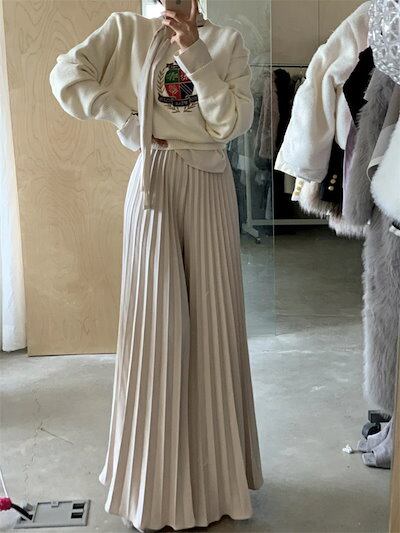 ワイドパンツ プリーツパンツ スカート風 レディース ワイドパンツ プリーツ 無地 ゆったり 楽ちん ウェストゴム ロング丈 パンツ ガウチョパンツ ボトムス おしゃれ プリーツパンツ 春 夏 秋 ゆ