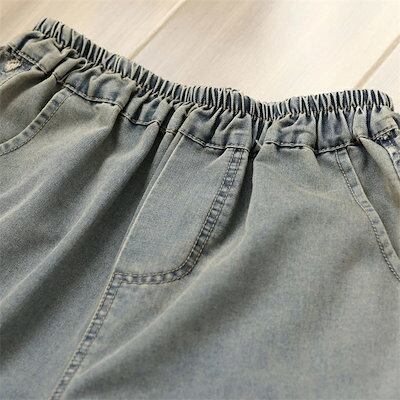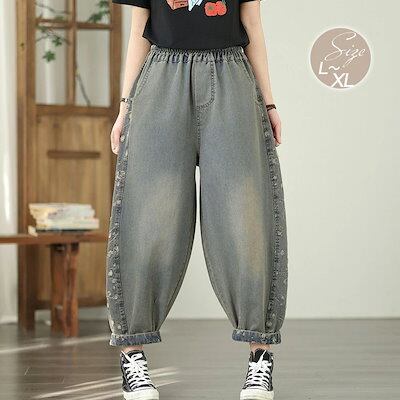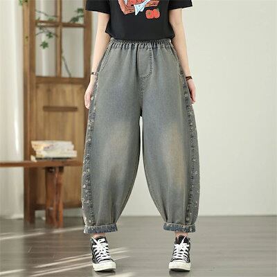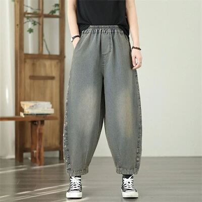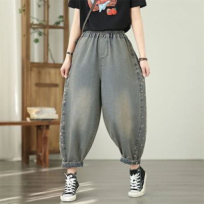 パンツ デニムパンツ レディース 春夏 デニム テーパードパンツ イージーパンツ ウエストゴム ボトムス 楽ちん レトロ ポケット付き 柔らかい ゆったり お洒落 カジュアル 体型カバー 着痩せ 美