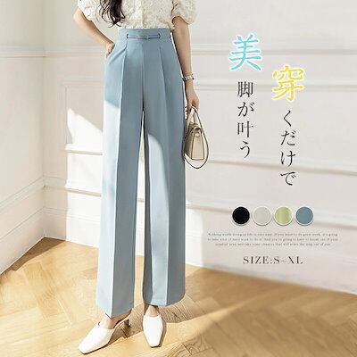 スラックスパンツ パンツ ロングパンツ レディース ワイドパンツ ハイウエスト ストレートズボン ボトムス 着痩せ 快適 きれいめ オシャレ かわいい 通勤 OL 無地 カジュアル 春 夏 秋 ビジネ