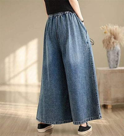 デニムパンツ レディース 秋冬 デニム ワイドパンツ パンツ イージーパンツ ロングパンツ ポケット付き ワイド ボトムス ズボン ウエストゴム カジュアル 無地 大きいサイズ ゆったり 着?せ 大人