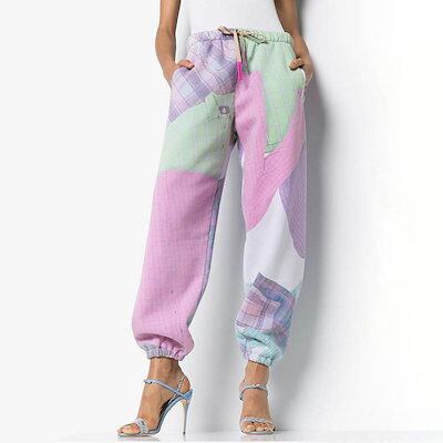 フェスボトムス レディース パンツ スエット ボーイッシュ 個性的 春 夏 秋 冬 オールシーズン 通学 お散歩 お出かけ デート フェス 休日 インドア 部屋着 S M L パープル グリーン カラフル