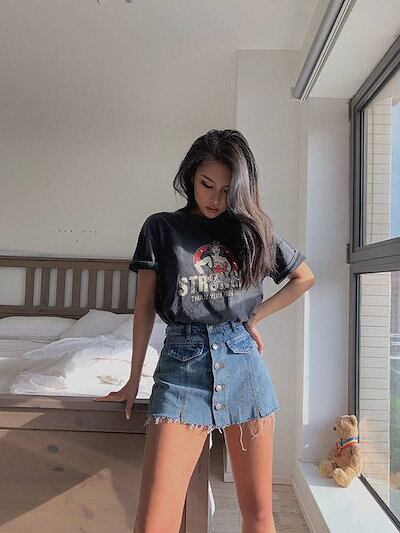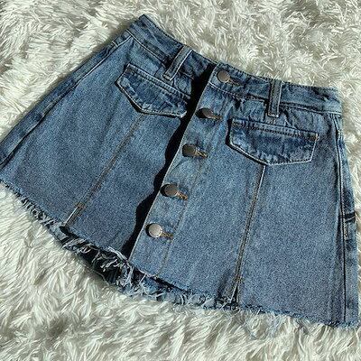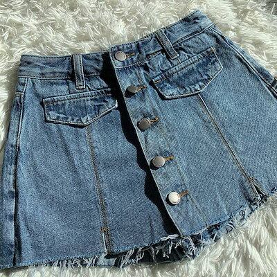 ショート パンツ ボトムス レディース ミニ タイト スカート デニム 膝上 細身 ハイウエスト スカパン シンプル カジュアル おしゃれ かっこいい 大人 可愛い こなれ感 デートポケット ボタン