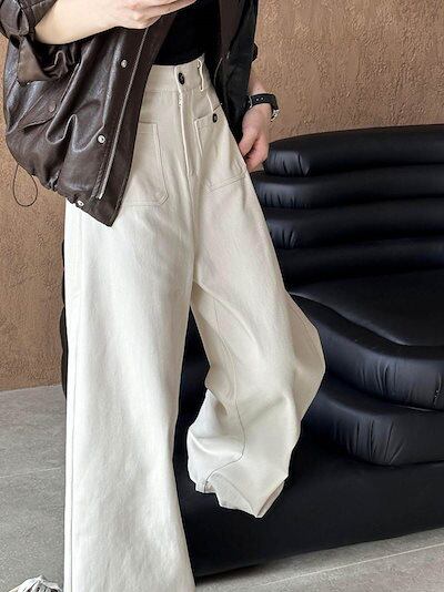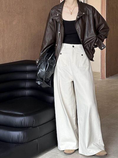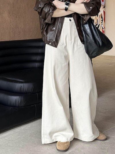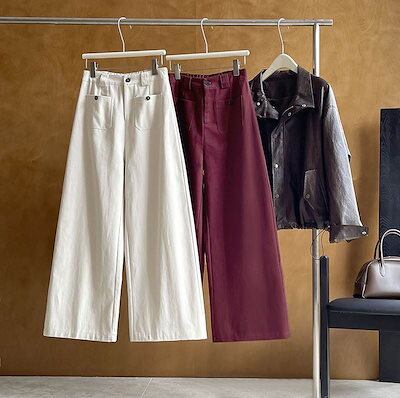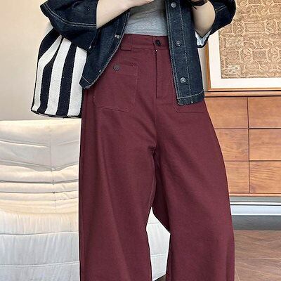 ワイドパンツ ロング ボトムス レディース ズボン パンツ ポケット ハイウエスト ウエストゴム かわいい きれいめ シンプル 上品 おしゃれ かっこいい カジュアル こなれ感 個性的 レトロ きちん