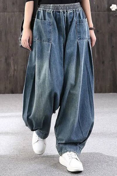 パンツ デニム 春 夏 秋 レディース ポケット 無地 ウエストゴム 10代 20代 30代 40代 50代 ママ会 公園デビュー お出かけ 女子会 デート 普段使い 休日 キャンパス インスタ映え