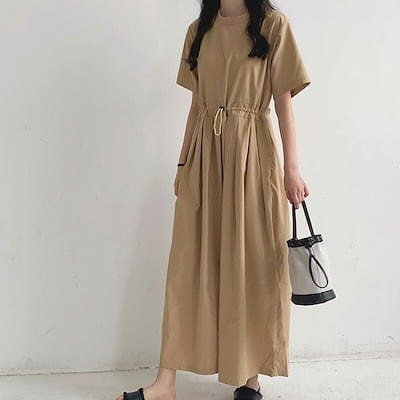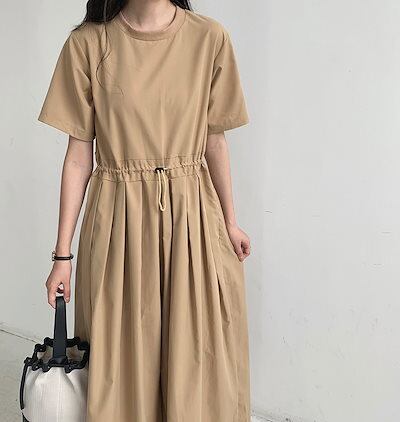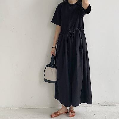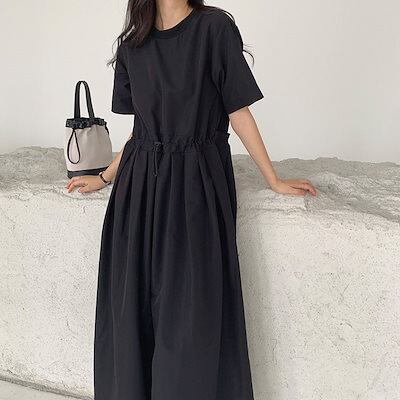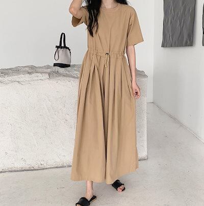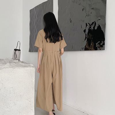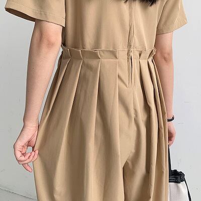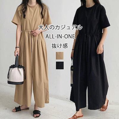オールインワン レディース つなぎ 半袖 ツナギ ワイドパンツ オーバーオール ロングパンツ クルーネック タック 体型カバー 長ズボン ゆったり 連体服 ジャンプスーツ 脚長 春 夏 秋 着痩せ