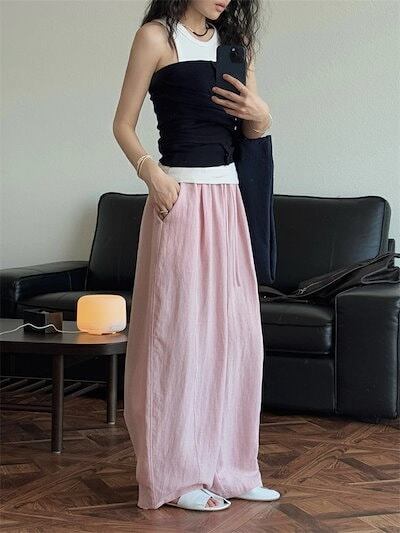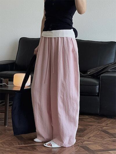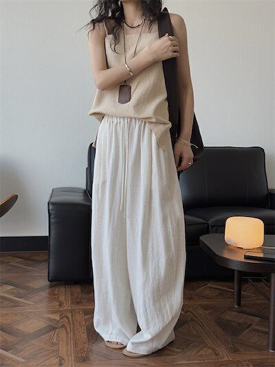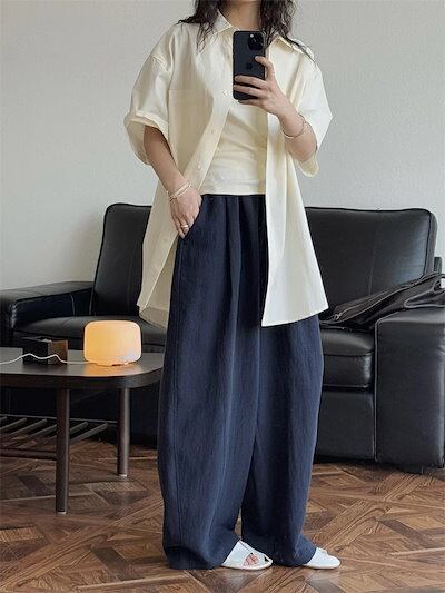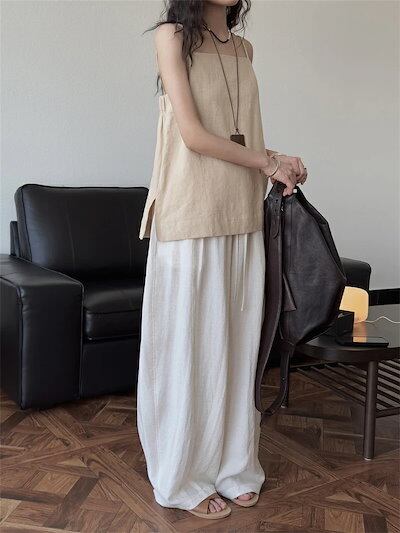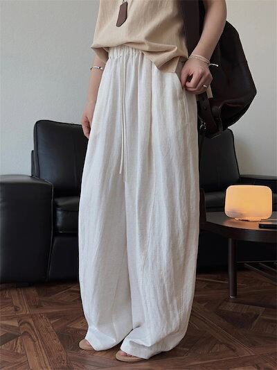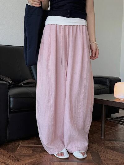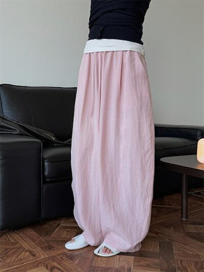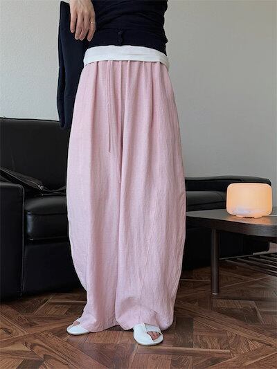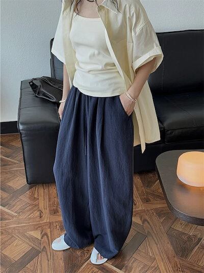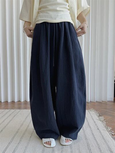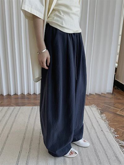 カーブパンツ バルーンパンツ パンツ レディース 春夏 ロングパンツ ワイドパンツ サルエルパンツ ボリェーム ロング丈パンツ ボリェーム ウエストゴム アンクルパンツ ポケット付き 綿麻 ハイウエス