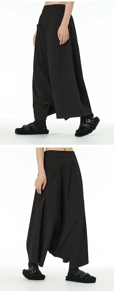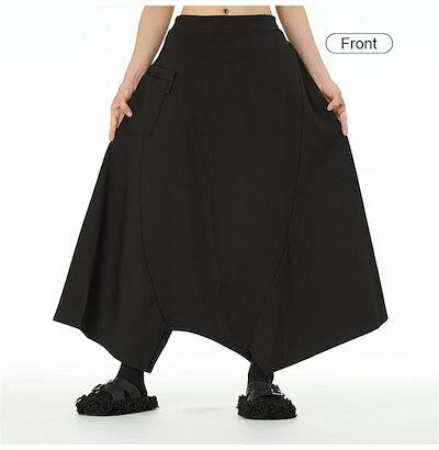 サルエルパンツ キュロット パンツ レディース ロングパンツ ガウチョパンツ ロング丈 春夏 イージーパンツ ワイドパンツ パンツ ウエストゴム 長ズボン ボトムス ブラック 黒 ワイド シンプル 美