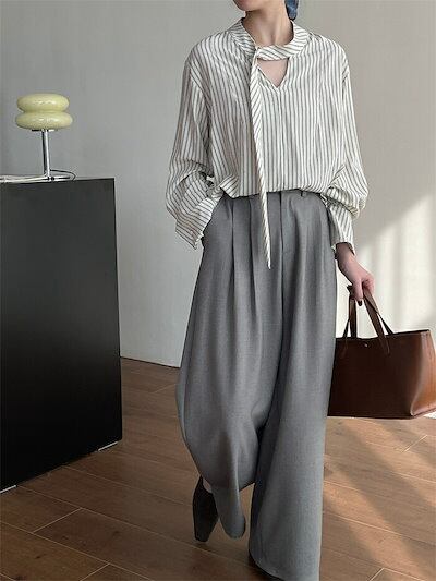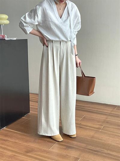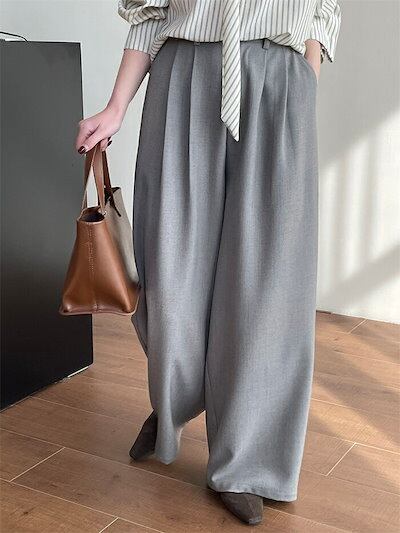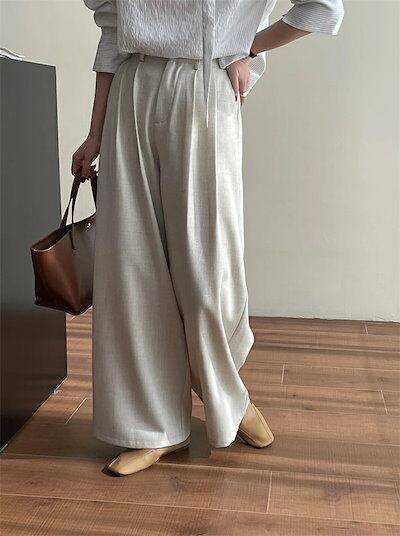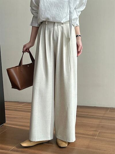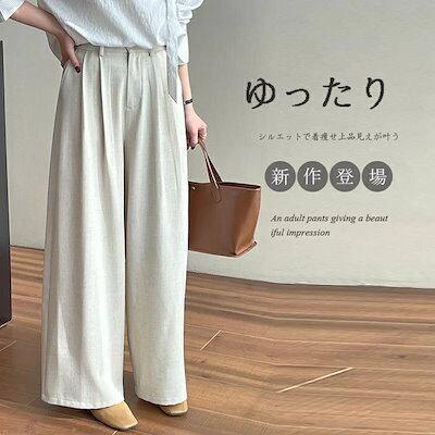 ワイドパンツ レディース ロングパンツ 春夏 ウエストゴム 後ゴム ゆったりパンツ ボトムス ガウチョパンツ ロング丈 スラックス ワイド ストレートパンツ きれいめ ポケット付き ギャザー 抜け感